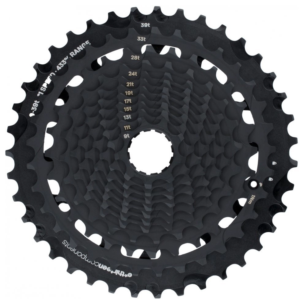 El Cassette 11V e*Thirteen TRS Race 9-46 esta desarrollado para la practica del Enduro pero se acopla a cualquier disciplina gracias a su bajo peso 287 gr. Tiene una gran amplitud de desarrollo gracias al piñón pequeño de 9 dientes y la corona grande de 46, con este cassette no necesitaras mas. Es muy versátil al tener tantas posivilidades, se adapta a cualquier terreno para sacar el máximo partido de tu golpe de pedal. Las coronas superiores están fabricadas con aluminio EXA+ y las 8 más pequeñas de acero cromo molibdeno, para combinar resistencia y eficacia en un solo componente.