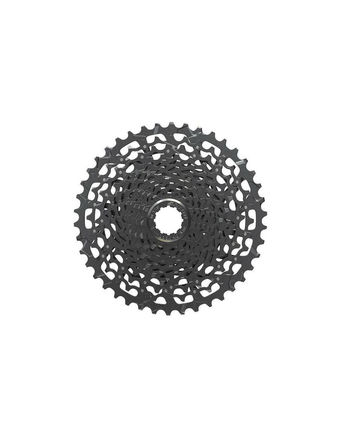 El cassette SRAM PG-1130 cuenta con una amplia gama de desarrollos. Con un total de 11 velocidades y un peso (aprox) de 538 g. Su diseño aporta un acabado para el que se ha utilizado la tecnología de acabado duro negro JET.