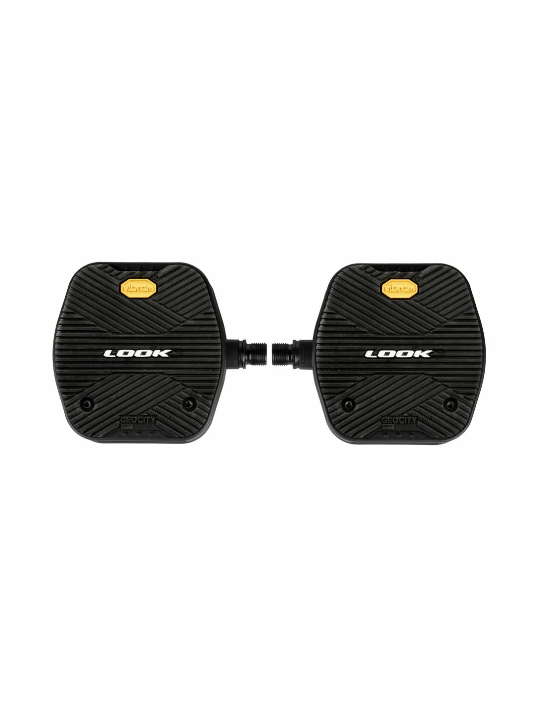 Los pedales Look Geo City Grip son unos pedales de plataforma diseñados para su uso en desplazamientos por entornos urbanos. Este modelo cuenta con una tapa superior fabricada con goma vulcanizada Vibram que proporciona un agarre extra.
